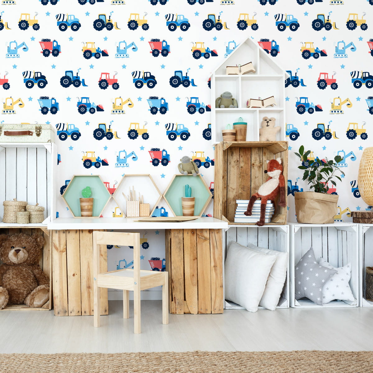 Tapeta Traktory, Pojazdy, Gwiazdy, Pokój Dziecięcy