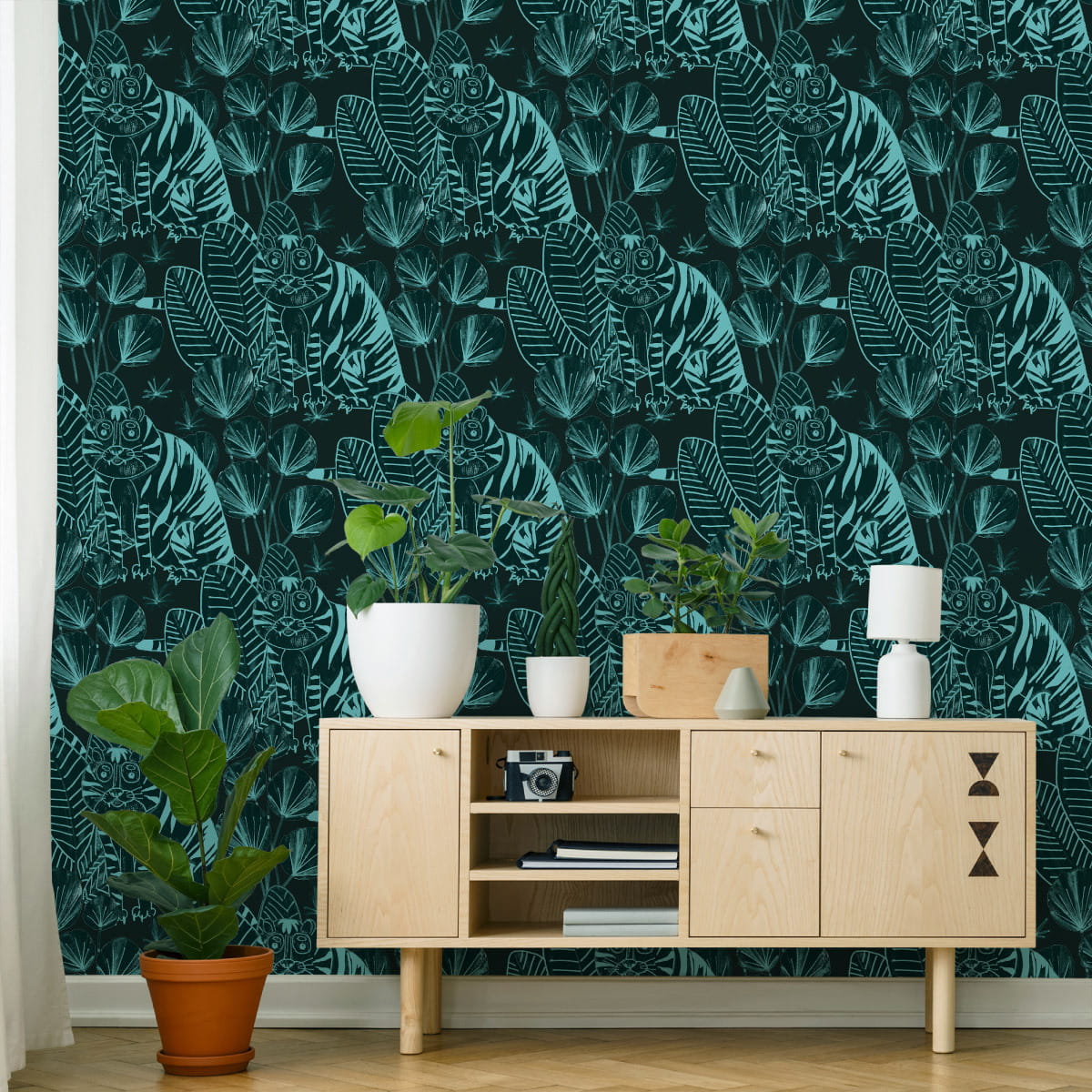 Tapeta - Tygrysy I Rośliny