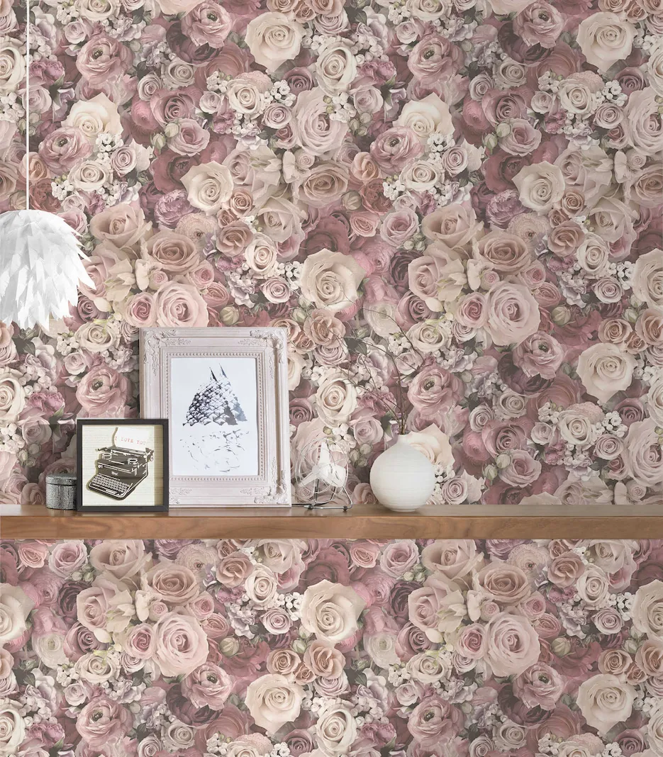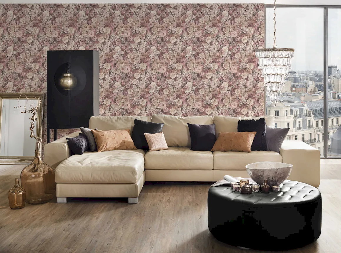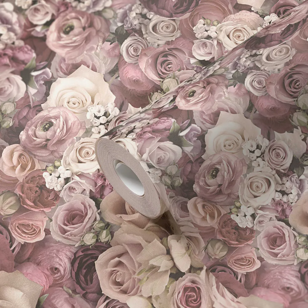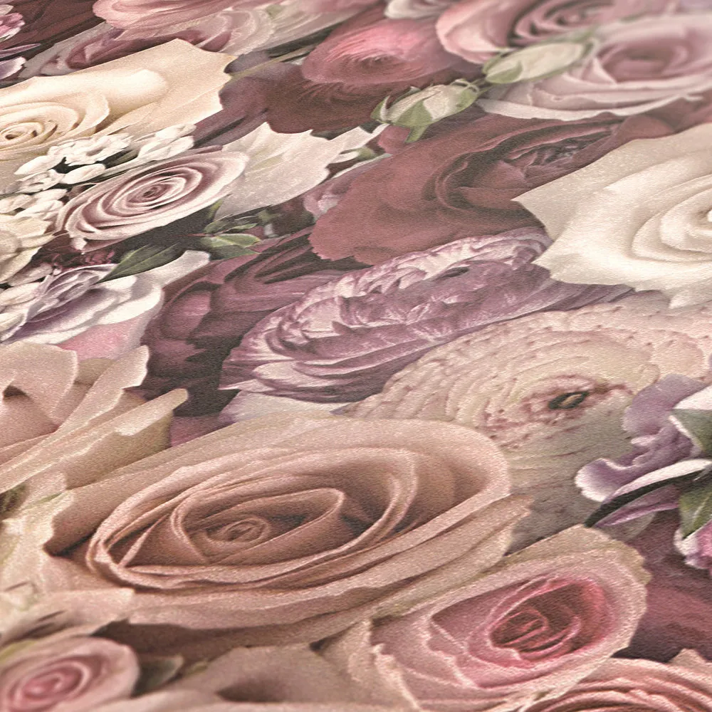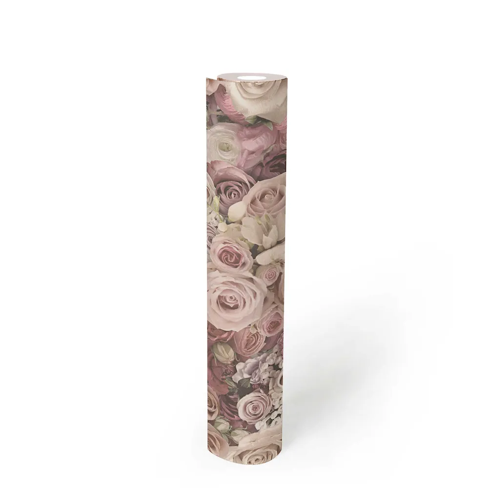 Tapeta URBAN FLOWERS 32722-2 motyw róż w odcieniach różu 3D - krem