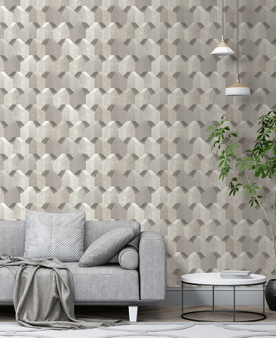 Nowoczesna tapeta ścienna UGEPA 3D na flizelinie. Wzór geometryczny imitujący tynk w kolorze szarym i grafitowym.