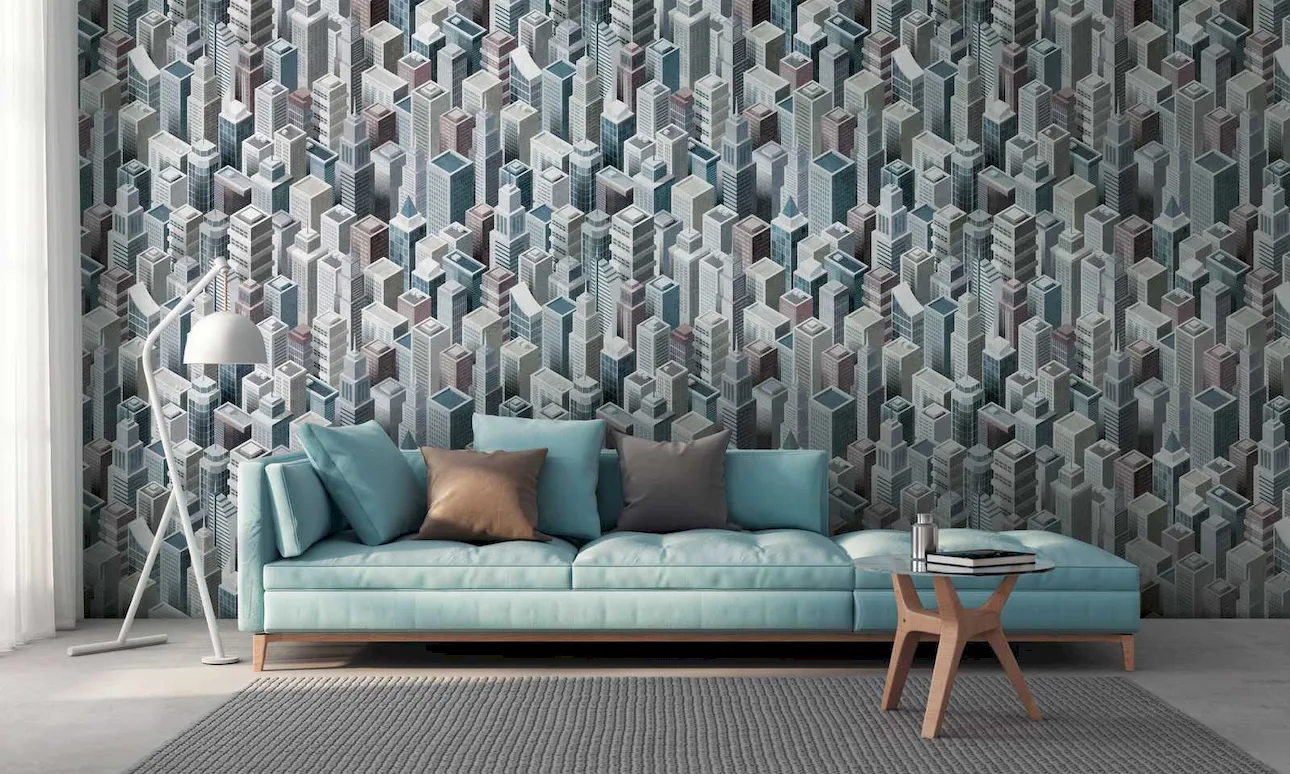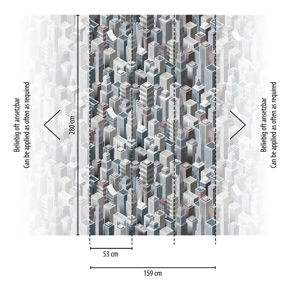 City Skyline na ścianę. Dzięki tapecie z motywem w stylu urbanistycznym stworzysz zupełnie unikalny wygląd swojej ściany. Wysokie budynki z efektem 3D sięgają wzrokiem aż po horyzont.