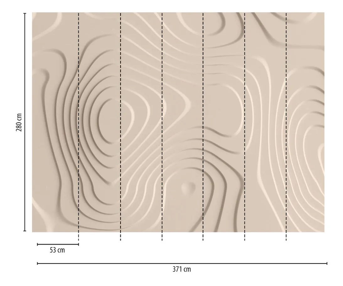 Beżowa tapeta z grafiką 3D w stylu topograficznym. Duży wzór na jednej rolce – tapeta z motywem przedstawia rozległy obraz w wyjątkowym stylu i można ją wygodnie naklejać w 7 pasach. Postaw na nowy trend tapet w aranżacji wnętrz z projektami w rozmiarze ściany, które samodzielnie lub w zestawieniu z innymi sprawią, że Twój pokój stanie się miejscem do relaksu.
