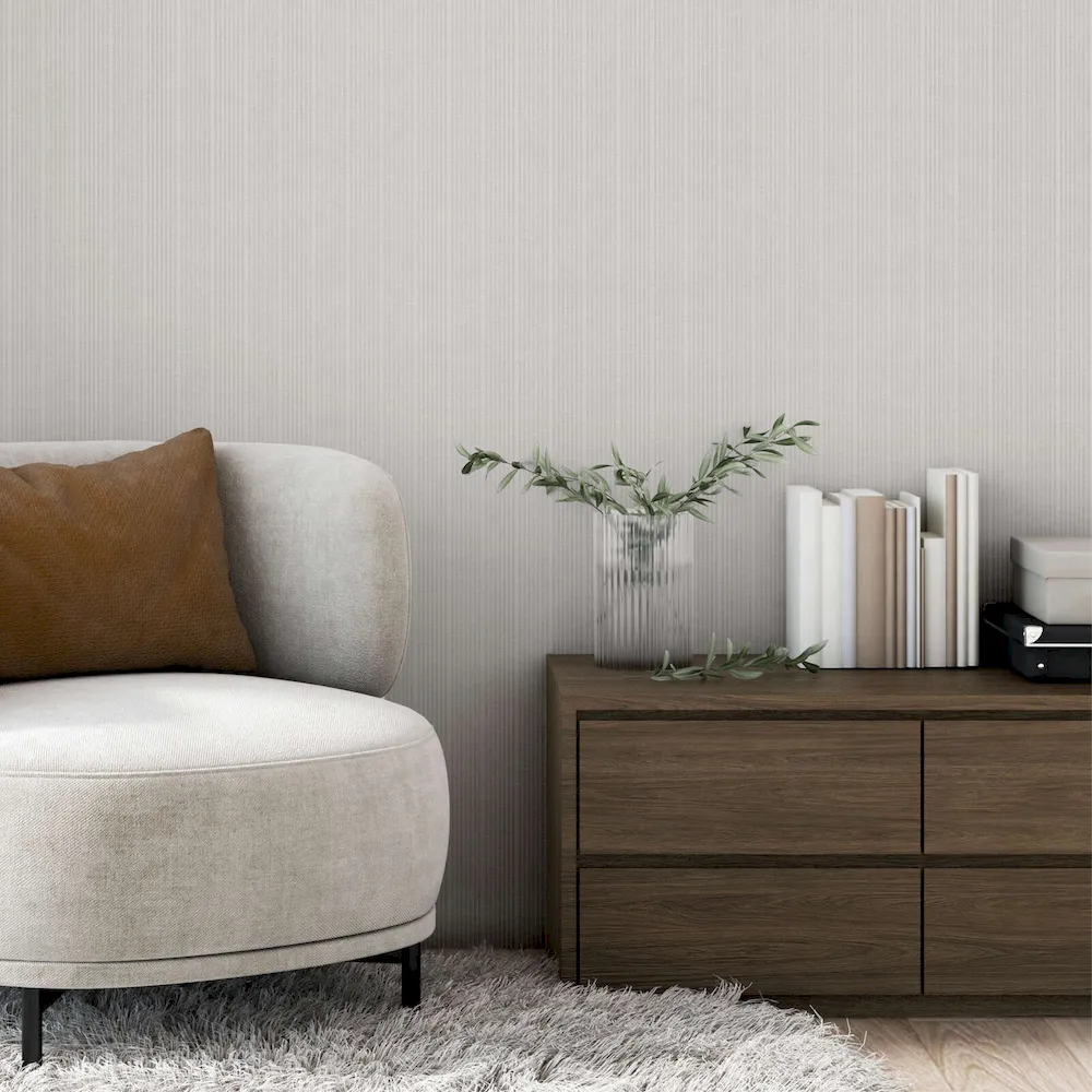 Tapeta AS, białe paski o strukturze betonu.